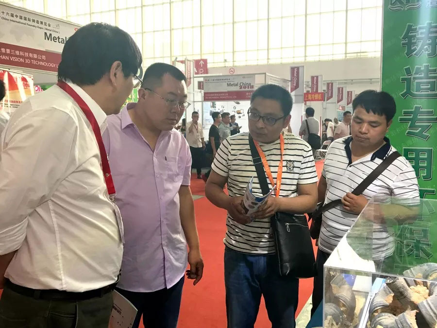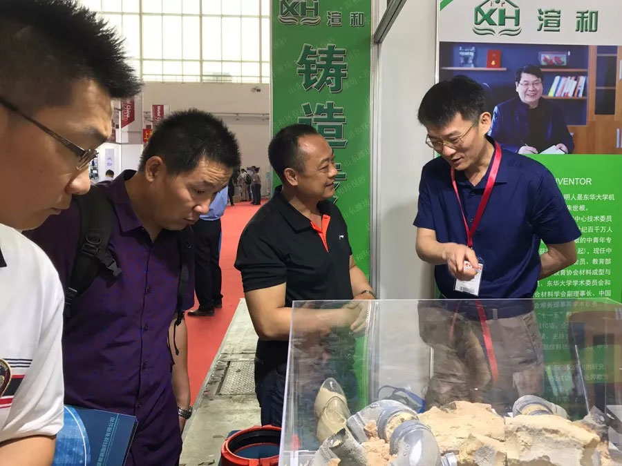 此次博览会,山东渲和新材料科技有限公司带着颠覆传统铸造行业的革命性成果——“‘渲和1号’新型无碳粘土湿型砂”首次亮相博览会,吸引了众多观展人员的目光,展台前人群络绎不绝,在参展的4天里,山东渲和收获颇丰:累计有效发放宣传册500多份,名片1000多张,接待菲律宾,孟加拉国,印度,加拿大,巴西及国内参观询问合作购买等客户3000多人。