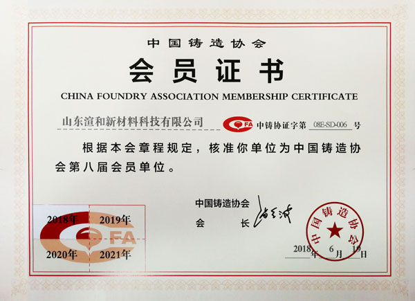 中国铸造协会会员证书