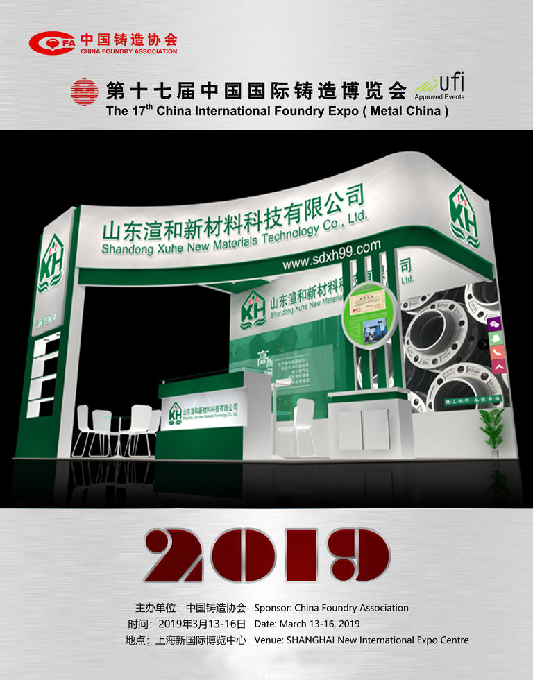 2019年3月13日——16日,山东渲和新材料科技有限公司作为参展单位,将参加2019年第十七届中国国际铸造博览会,参展产品为颠覆传统铸造行业的原创性技术成果——“新型无碳粘土湿型砂”,届时欢迎广大客商光临洽谈!