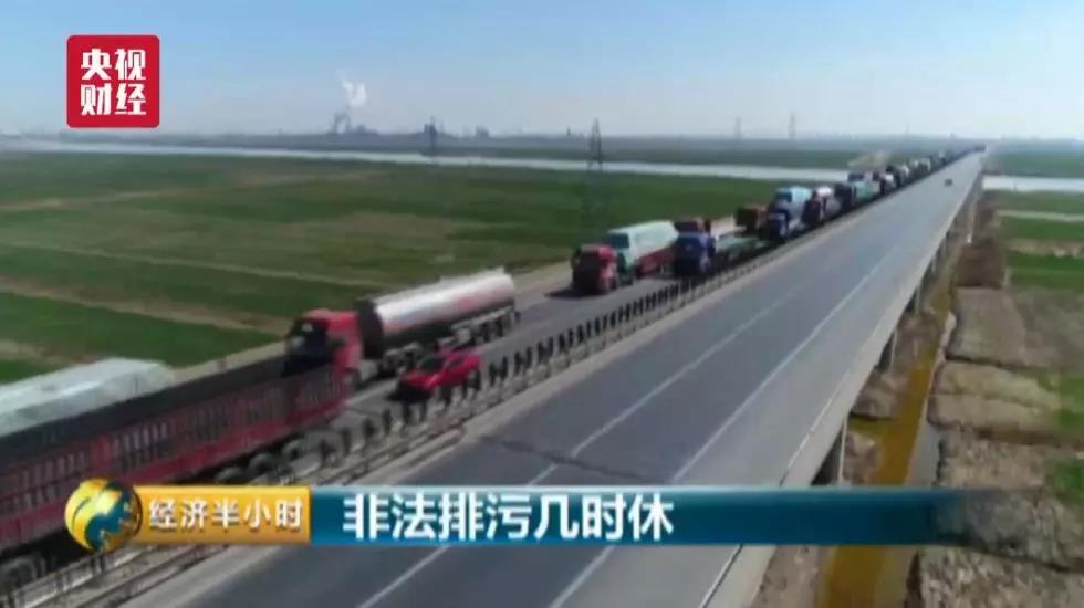 2018年3月,记者前往灌云县堆沟化工园区进行走访,这是无人机在通往灌南化工园区公路上拍摄到的画面,从园区方向驶来上百辆运送化工产品的货车在公路上形成了一条巨大的长龙,一眼望不到头,尽管当天刮起了4、5级的大风,但化工园区上空仍被一层灰蒙蒙的烟气所笼罩着,在晴朗的天空映衬下十分明显。