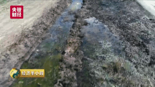 不仅如此,农田中大小不一的深坑里也灌满了泛黄的污水,这些深坑就像农田中的一道道疤痕,显得格外乍眼。
